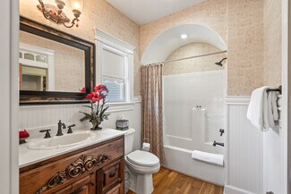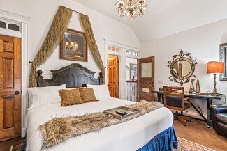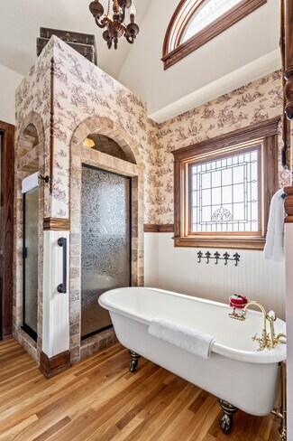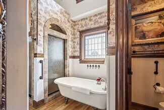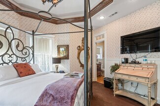 Timeless Elegance in the Heart of Bentonville! Nestled just 700 feet from the Bentonville Square, this stunning Victorian-style property offers an unparalleled location within walking distance of Crystal Bridges, restaurants, shopping, and some of the finest walking and biking trails in the country. Built in 2004, this exquisite property blends old-world charm with modern luxury. Each of the seven uniquely themed suites is thoughtfully designed to reflect a different period in history, creating a truly immersive experience. Intricate woodwork, elegant crown molding, and a grand chandelier fit for royalty make a lasting impression from the moment you step inside. Zoned as commercial in the Downtown Bentonville Edge, this one-of-a-kind estate offers endless possibilities. The home features three Romeo & Juliet balconies, three fireplaces, and private bath suites for each bedroom, ensuring comfort and privacy. Whether you envision it as a boutique inn, luxury rental, or prestigious residence, this breathtaking Victorian is a rare find in one of the most sought-after locations in Bentonville.