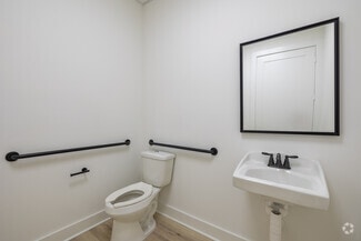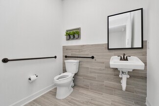 This modernist building was built in 2024 and is part of Kingsland Crossing, a community of newly delivered mixed-use condo buildings in the vicinity.