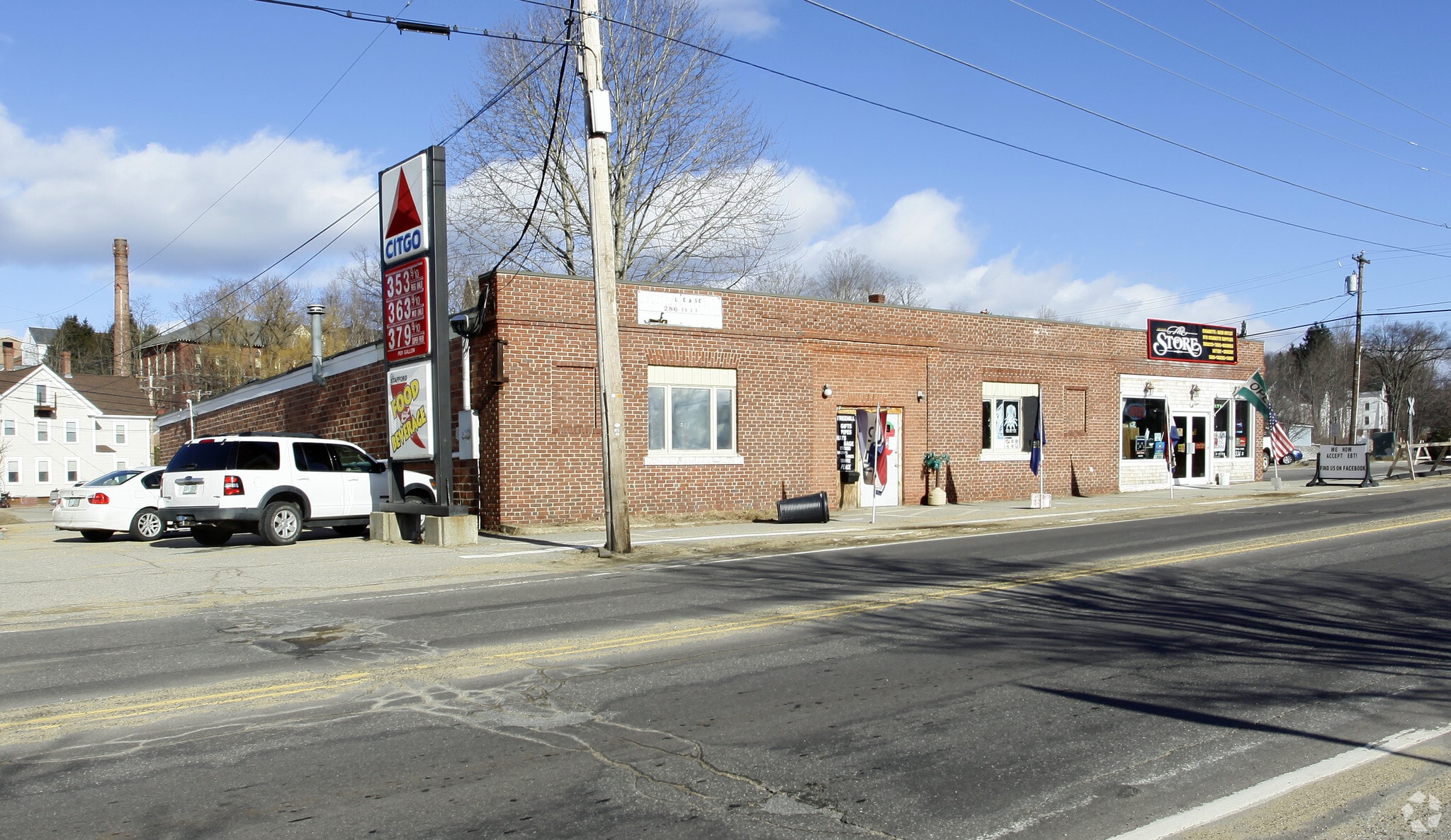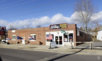 It is on the corner with the intersection of Main Street and Prospect Street and across from the Park Street bridge. This is the only intersection in town with a traffic light. It is located between two convenience stores, 'The Store' and the Stafford Oil Citgo station. The floor is carpeted concrete. The unit had been used for retail recently. Parking is either in the rear or uses the 11 paved parking spaces adjacent to the East. The bathroom is located at 'Unit 2' and may be used during the hours they are open. Heat is gas and is metered. The gas units are super efficient radiant gas. Electricity is included. Air conditioning is included. Two 4x6 signs had been approved for this location previously. The building was originally built in 1926 as the Granite State Ford dealership.