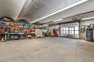 Two spacious, multi-bay garages with a liftthat is ideal for vehicle maintenance, detailing, restoration, or workshop needs—a dream setup for any car enthusiast or automotive business.