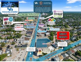 For Lease: Former Dollar General, 3079 Bailey Avenue, Buffalo, NY 14215 Former free standing 9200 SF Dollar General with ample parking located in a busy, densely populated urban neighborhood, one and half miles from The University of Buffalo South Campus and Erie County Medical Center. Suitable for thrift store, furniture, hair supplies, grocery store, clothing, auto parts or medical clinic. Will divide and remodel to suit. Lot Size: .83 acres Bldg Size: 9200 SF Parking: 35+ cars Available: Jan 2023