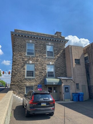 31 East Butler Avenue is a unique, newly renovated, 100 year old stone office building which offers a premier suburban location. It is situated next to the Bell-Atlantic/Telco switch and is minutes from the Blue Route (I-476), and Exit 26 of the PA Turnpike. Just a short walk to the Ambler Train Station (R5), shops, and restaurants. The building contains a walk-in vault which is now a kitchen and two jail cells that can be used as storage. This building was formerly the Borough Hall/Police Station, a bank and an art hall.