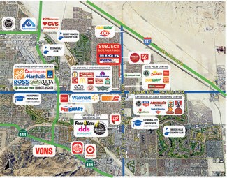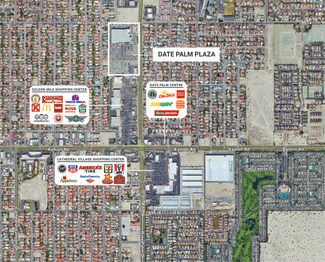 Adjacent to the Golden Mile shopping center, Date Palm Plaza benefits from the co-anchorship of a diverse range of establishments, including Cardenas supermarket, CVS, Pepboys Auto, McDonald's, Panda Express, Circle K gas station with convenience store, Taco Bell, Round Table Pizza, Panda Express, Wing Stop, Habit Burger, and Dave's Hot Chicken.