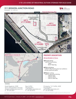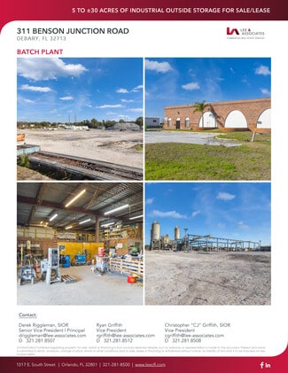 LOT 1 | ±7.3 Acres 2,400 SF Shop Building - 3 Bays - 840 SF Wash Bay LOT 2 | ±10.8 Acres 3,200 SF Office Building (Can be modified to provide warehouse space) LOT 3 | ±11.7 Acres 5,000 SF Office/Shop Building - 3,000 SF Shop - 2,000 SF Office - 2,850 SF Wash BayMost Recently a Concrete Batch Plant Fully Fenced and Secured Site Lighting Throughout Fully stabilized and Turnkey for Truck and Equipment Traffic Good Hard-pan Interior Road System Flexible Zoning that Permits IOS and Various Industrial