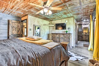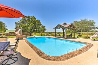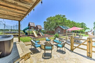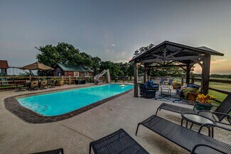 Hilltop location boasts year-round unbroken views of rolling pasture out to the sunrise and sunset with a wrap around porch for shade at any time of day. Interior opulent custom-finish throughout both houses. Metal roofing. Inviting outdoor area includes a full-size pool, hot tub and play ground. Currently on AirBnB, VRBO, Evolve, etc as 'Sunset Ranch' with regular bookings. Sleeps 16. Remodeled in 2022. Wooden barn with full power and three covered parking places: 22'x38' 12'x30' and 18'x50'. Multiple out-buildings and carports for your RVs, ATVs and boats. Additional build-site with power is already prepared. Close to Amon G Carter Lake. Totally Country but only 3 miles from the main 287 North Texas - Colorado Highway. One hour from DFW Airport. Lots of game from the surrounding woods and the immediately adjacent LBJ National Grasslands. Texas freedom. Bring your guns! Call today to tour this one of a kind property. One or more of owners is a licensed real estate agent.
