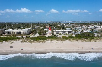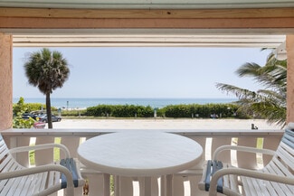 Legal short term rental Triplex along the Atlantic Ocean in the heart of the Indialantic Tourist District. Rare investment and lifestyle opportunity awaits at this one-of-a-kind property. Each of the three town homes is approx.1500 sq ft, fully furnished and turn-key. Each unit features 2 bedrooms, 2 full baths (2 of the units also have an additional 1/2 bath), private 1 car garage and private courtyard with hot tub, easily sleeps 6. As an established high-performing weekly rental, the property offers flexibility such as option to live in one unit while renting out the others, rent all three to maximize income, or use one unit as a seasonal retreat with built-in ROI. Perfect location walk/bike to unique restaurants, coffee shops, beach bars, grocery stores, Surf shops and boutiques. Only 65 miles from Disney World with an essentially no-turn drive straight on 1-92 making this one of the closest coastal accommodations to the Disney parks. Flexible tourist zoning allows for redevelopment a range of future uses-excellent long term redevelopment potential