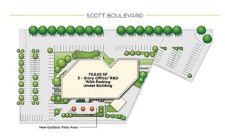 Situated on a high identity corner in northern Santa Clara, 3120 Scott Boulevard provides premier office and research & development space in a newly renovated building. Comprising approximately 78,645 square feet across three stories, recent renovations include a new three-story glass curtain wall entrance, an updated sizable lobby, market-ready suites, and an expanded deck/amenity area. Exterior renovations include a complete refurbishment, a developed outdoor amenity area, and extensive site and landscape renovations. Businesses at 3120 Scott Boulevard enjoy high power capabilities (4,000-Amp/480-Volt), a 150-kW diesel generator, a server room, and low Silicon Valley power rates. In addition to the immediate Highway 101 and Central Expressway access, commuters enjoy ample on-site parking (including 61 covered spaces in an underground, private lot), a nearby bus stop that goes to the VTA Light Rail, and convenient access to Interstate 280, Interstate 880, and CA-237/Southbay Freeway. 3120 Scott Boulevard is just a seven-minute walk from Santa Clara Square, home to 1,800 new apartment homes and a premier marketplace featuring Whole Foods, Il Fornaio, Fleming’s Steakhouse, and much more.