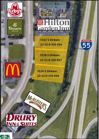 Positioned in one of Springfield’s most visible and high-traffic corridors, 3124 S Dirksen Parkway offers a prime ±1-acre development opportunity ideally suited for retail, restaurant, or hospitality use. The site benefits from direct exposure to both South Dirksen Parkway and Interstate 55, with an impressive average daily traffic count of 54,700 vehicles. Located at Exit 94 near the Stevenson Drive interchange, the property is flanked by nationally recognized brands including Hilton Garden Inn, McAlister’s Deli, Starbucks, Arby’s, and Panera Bread, reinforcing its appeal for consumer-facing businesses.