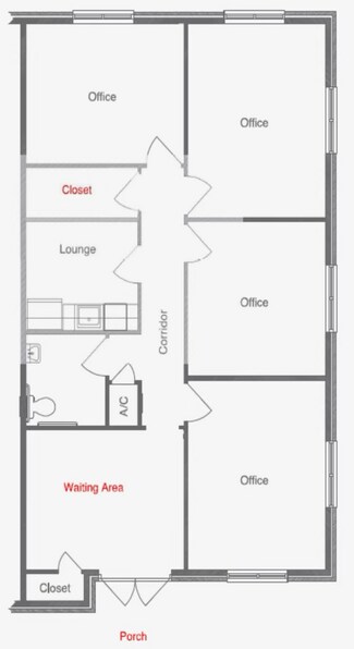 4) 3 offices, one conference room, one restroom, one kitchen, one reception
