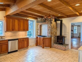 The suite has both a front and rear entry, full kitchen, a newly installed 200amp panel, central hvac, 3 gas fireplaces with historic charm, and plenty of well appointed molding, making it feel welcoming and inspirational for both you and your clients! The suite has 1128 USF available for Whitemarsh Township Village Commercial 2 zoned businesses.