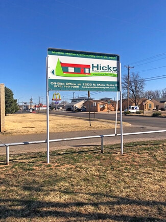 On public utilities, Hicks is the rare, manufactured home community where all the residents own the homes. Only 39% occupied, this 59-site park offers a great value-add opportunity for an investor to bring in homes (something this current ownership group has not done) and fill them to grow occupancy and revenue. – Additionally, there appears to be a strong rent upside story. Current average lot rents of ~$415/month sit well below estimated market levels of $485–$525/ month, providing an immediate path to revenue growth through rent increases. Nearby comparable product also supports this strong rent growth story, with surrounding apartments and single-family homes renting for $1,200+, thus further demonstrating the below market rents at the subject community. – Site sizes are sufficient to accommodate newer, more modern singlewide homes. Additionally, there could be flexibility to utilize vacant sites for RVs as an additional revenue stream. – Conveniently located in the heart of Clovis, NM, Hicks sits just one block from a grocery store and multiple restaurants and a short drive from a variety of retail and entertainment options on Prince Street, making this an attractive home base for tenants. Located approximately 7 miles from Cannon Air Force Base, the community benefits from a consistent influx of military personnel and support staff, underpinning long-term housing demand. – Buyer may obtain a new loan; however, Seller financing might be available for a qualified buyer.