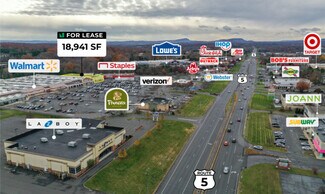 FOR LEASE: 18,941 SF PARKING: 908 spaces USES: medical, retail or restaurant Join Walmart, Staples, Panera Bread and Verizon in this 188,785 SF shopping center. High traffic retail corridor with great visibility from Route 5.