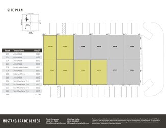 Located in the heart of Mustang, OK, this modern retail/flex center was newly constructed in 2018 and offers one of the most versatile in-town commercial opportunities available. Current vacancies include four first-floor units—200/201 (2,250 SF), 205 (1,350 SF), 209 (1,350 SF), and 213 (1,350 SF).