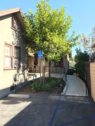 Rear unit professional office (317) located behind the State Farm Insurance building in Old Town Monrovia--across street from Library Park. Nicely remodeled executive office space with a separate outside entrance, reception area, 2 private offices (one could serve as a conference room), and bathroom. Hardwood floors throughout with central heating/air, recessed lighting, crown moldings, and ample windows that provide great natural lighting. There are two (2) reserved parking spaces in the rear and plenty of street parking available in front. Lease includes water, trash, gardening and AC/heating maintenance. Signage space available on front monument sign.