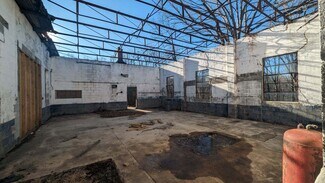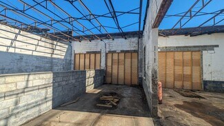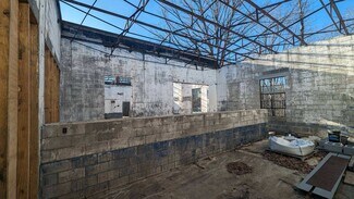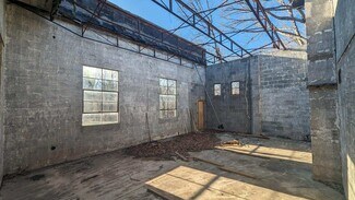 Originally a Nash automobile dealership, the substantial mid-century modern masonry structure has been expanded to approximately 3,441 sq ft. It features 14 ft ceilings and large steel-framed factory-style windows on all four sides. While the building has been vacant for many years, masonry and steel structural repairs have been completed, and the exterior has been painted. The structure currently has no roof, but the original steel roof trusses remain in place and will add architectural interest to your renovation.