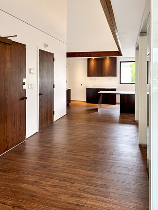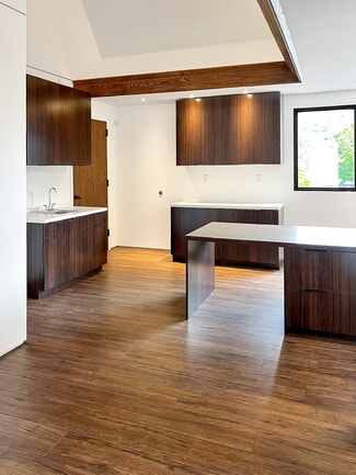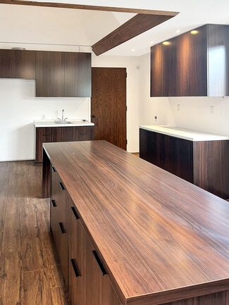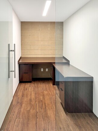 Office space for lease in a rare architectural gem designed by Eric Lloyd Wright. This one-of-a-kind building reflects the vision of an owner who set out to create more than just a workspace--it is a personal expression brought to life through thoughtful design and organic architecture. The exterior has patina copper and steel siding that changes color with age. The pyramid roof was designed with exact specifications of the Great Pyramid! The interior has been completely built out so nothing to do-- just move in! There are 2 units available for lease. Unit 201 has wood-like flooring, a nice sized main room with desks and cabinets, a kitchen area and 3 private offices all with built in desks. Incredible mountain views can be seen from the main area. Unit 202 has white marble flooring and 3 private offices with built in desks, shelving and a storage room. Both of these office space units are very special with dramatic interior pyramid ceilings. Both units have heating and A/C, the Restroom is located downstairs and each unit comes with 2 assigned parking spaces with an automatic gate entry. MUST SEE to appreciate. Located in a prime area of Glendale. No Build Out required. MOVE IN READY! A workspace that stands apart from the ordinary!