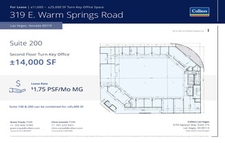 • High visibility location on E. Warm Springs Road; Convenient access to I-15 and the 215 Beltway (2 interchanges close by)