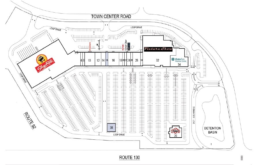 This 196,000 square foot Town Center Plaza is located on heavily traveled Route 130, immediately south of the new Route 133 Bypass. Anchored by 80,000+ SF Shop-Rite and Starplex 10-Plex Theater with strong national and regional tenants including Dress Barn, Sleepy' s and T.G.I. Friday' s.