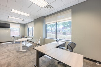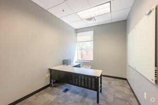 Suite 131 spans 4,889 square feet on the building’s first floor and features a highly efficient layout with contemporary features like glazed glass walls and A/V-enabled rooms. The layout includes a professional lobby and reception area, two spacious conference rooms, 12 private offices, four open cubicle workstations, a fully equipped kitchen and breakroom, a secure IT closet, and a private restroom. Tenants of this space also get three reserved covered parking spaces.