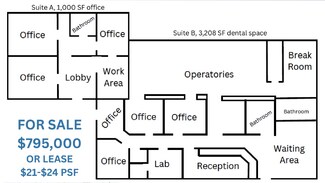 This building on the main road from I25 to Old Downtown Fountain has incredible visibility and versatility. The front 1,000-SF office is rented with two years remaining on the lease. The 2,208-SF rear space has been a busy dental office for nearly 50 years and still has much the infrastructure in place for that use. There is plenty of parking, and great visibility to the new lighted intersection at Indiana and Santa Fe. Don't miss this extraordinary opportunity to own and occupy while collecting rental income from the adjacent space.