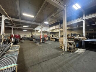The west section, around 20,000 Sq. Ft., was previously occupied by VW Broaching Service for production broaching and specialty machining, featuring a loading dock and 3,000 Sq. Ft. of office space. The east section, approximately 30,000 Sq. Ft., has six clerestory (up to 20’ Clear Height) and includes five (5) loading docks and office/ breakroom areas. Both sections have concrete floors, with some areas having oak brick flooring.