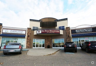 Located just off South Gaetz Avenue, 3215 49 Avenue offers prime commercial and retail space in close proximity to both downtown Red Deer and the city’s main retail district. The property features two units—Unit 103 (1,207 SF) and Unit 201A (2,217 SF)—available for immediate lease under Triple Net (NNN) terms. Tenants benefit from ample shared paved parking, elevator access to the second floor, and prominent fascia and pylon signage. The site is surrounded by complementary businesses including a nail salon, dentist, pharmacy, optometrist, and osteopath. Zoned DC20 (Direct Control), permitted uses include restaurants, health and medical services, commercial services, and recreational facilities.