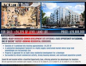Shovel-ready oversized corner development site offering a rare opportunity in Flushing, one of Queens’ fastest-growing residential corridors.