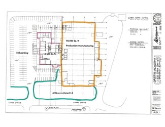 The facility features a generous 12,500± SF of office space, which may seem excessive at first glance, but offers flexible options for conversion into additional R&D or light production space. The remaining 49,400± SF of the building is manufacturing/warehouse space equipped with heavy-duty amenities, including a small half-ton crane way, welding areas, 3-phase/1600 amp power, and a fully piped air compression system. The building is also fully air conditioned and wet-sprinkler system, providing enhanced safety and comfort for your workforce.