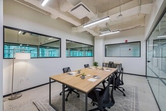 Ideally located in Hudson Square, Industrious at Soho West is bordered by the West Village, SoHo, and Tribeca. This location offers members private offices, on-demand meeting rooms, phone booths, and beautiful lounge areas, alongside best-in-class hospitality. High ceilings with ample greenery enhance the Industrious lounge areas, while 24/7 building security and a reimagined lobby will greet you on arrival. When you’re ready for a break, Industrious at SoHo West is ideally located near many of the city’s best restaurants, boutiques, coffee shops, and nightlife. Even more, getting to this building is an easy commute with convenient access to the Holland Tunnel, PATH trains at Christopher Street and World Trade Center, and subway lines at Houston, Spring, and Canal streets. Bikers can also take advantage of the bike lane directly in front of the building. For a flexible workplace experience like no other, visit Industrious at SoHo West.