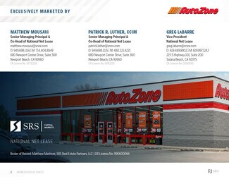 • Recently signed a brand new 20-year lease with 4 (5-year) option periods to extend, demonstrating their long term commitment to the site • AutoZone Parts Inc. (S&P: BBB) corporate signed lease • Features 5% rental increases every 5 years throughout the initial term and at the beginning of each option, increasing NOI and hedging against inflation • The property features brand new construction, with with modern design and state-of-the-art amenities