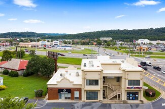 Prime office space available in great location! High visibility, on the corner of Main St/Hwy 41 in busy Cartersville. This space is upstairs, accessible via an elevator + staircase. Zoned M-U. Eight private offices with receptions area, conference room, shared work space, ample storage + break room.