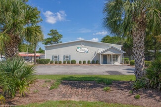Located just off Tiller Drive in Pawleys Island, this property is situated on 1 Acre and totals roughly 14,810 sf. You will notice on arrival the property has been very well maintained and is gated with a magnetic entry at the front door. As you enter there is a large open office floor plan in the front with two restrooms (shower in place on 2nd restroom as depicted on plans). There is a conference room/executive office located on the second story overlooking the original warehouse portion of the building. The original 4,236 sf was built in 1996 and10,000 sf was added on in 2007. The 10,000 sf can be sealed or partitioned off with fireproof roll up doors and has been used for light manufacturing and distribution. As you enter the 10,000 sf there are a few offices overlooking the warehouse with a breakroom and restroom. Overhead there are skylights throughout providing quite a bit of lighting during daytime hours. The eve heights are 17’5” at center and 12’ at the side walls. There is 460V Three Phase power in place. At the rear of the property there are two 12’x12’ roll up doors. This property is zoned in the very flexible (RS) Resort Service District. Please see the attached list of approved uses.