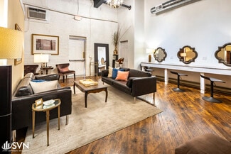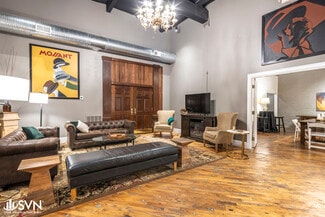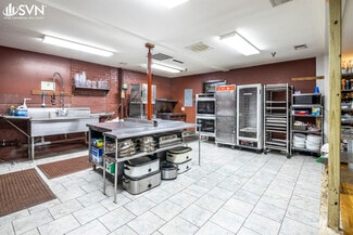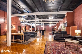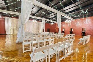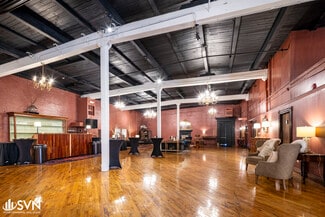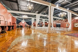 The building is currently configured as an event venue with a large ballroom, private meeting/dressing rooms, a catering kitchen, modernized restrooms, and large storage/warehouse space. Tall ceiling heights (~17 ft) and wide-span construction provide excellent adaptability for reconfiguration or buildout. This property could be transformed into a flex/light industrial use, or could continue as a vibrant retail space. All public utilities including electricity, water, sewer, and gas are available to the property.