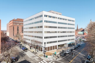 This seven-story, 119,000-square-foot building delivers wide-open floor plates designed to support modern, flexible office environments, with availabilities ranging from 2,283 square feet to full floors of approximately 17,000 square feet. The top two floors can be combined to create a contiguous, large-scale corporate office environment, ideal for headquarters-style users. Recently renovated options include a move-in-ready corner suite with a blend of open workspace and private offices, new finishes, an IT room, conference space, and 9-foot finished ceilings. Additional offerings include a premier executive floor featuring architectural millwork, glass detailing, shower facilities, and private restrooms. Extensive parking, with 70 spaces in the deck and 100 in the underground garage, combined with on-site security, professional property management, high-end finishes, and exceptional window lines positions One Weybosset Hill as an ideal headquarters-style environment for professional, institutional, or nonprofit users seeking quality, scale, and efficiency.