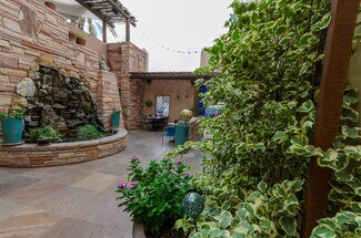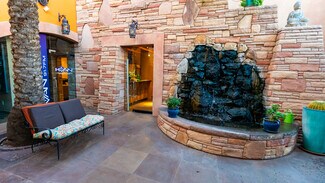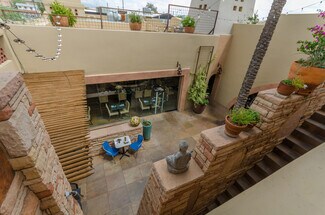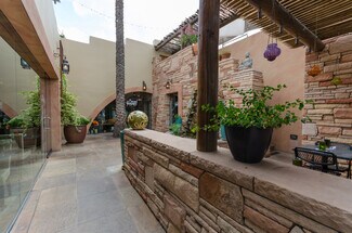 Nestled within the stunning architecture of the Sea of Glass Center for the Arts is a unique rental opportunity. Just steps from the Historic 4th Ave. business district, this high profile, 1,850 square foot retail space boasts an exquisite, tiled courtyard, featuring an ornate iron gated entrance, slate tables for outdoor seating, a running waterfall and pond, and a full upstairs balcony with sweeping views of the Catalina mountains, providing the ideal ambiance for your clientele. Upon entering the property, one feels they have entered a sanctuary, an oasis of peace in the midst of downtown Tucson. Property consists of two adjoining units that may be rented separately or together. Together, the lease rate is $4000 per month. $4000 per month lease rate. Please note, this is a modified gross lease, meaning that the landlord will pay the property insurance, and cover the main maintenance issues. If the tenant were to pay these costs (as in a Triple Net Lease), it would add approximately $400 per month to the total cost. A special property and location that can be utilized for many purposes.