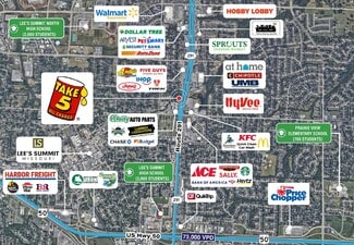 The new construction, 3-bay property, is strategically positioned along Route 291 with direct access to 30,130 vehicles per day. It is also within proximity to both U.S. Highway 50 (73,000 VPD) and Interstate 470 (42,000 VPD). The property is surrounded by major national retailers including Walmart Supercenter, Sprouts Farmers Market, Hy-Vee Grocery, At Home, Ace Hardware, Starbucks, and Chase Bank. Additionally, the site is ideally situated between Lee’s Summit High School and Lee’s Summit North High School, which together enroll more than 4,000 students. The surrounding area boasts a population exceeding 93,000 residents within a ?ve-mile radius, with an average household income greater than $127,000.