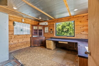• Inside, you'll find a private office, restroom, and kitchenette with a sitting area, along with lofted storage above the office.