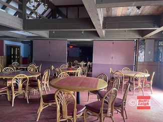 tables, chairs and booths that hold a total of 354 guests, a large wrap around bar, 3 fireplaces, 4 restrooms, and a huge fully equipped kitchen. The lower level consists of a wine room, lots of storage and office space.