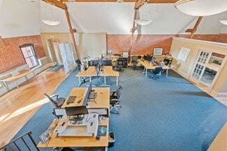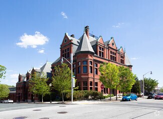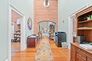 Spectacular, Elegant, High-End finishes in the historically renovated "Castle at Keswick & 34th", features high ceilings, intricate wood trim, exposed brick, heavy wood carved doors, brass hardware, and marble tile baths. Walk to many fun and delicious restaurants and shops just 2 blocks away. I-83 four blocks away means easy access for your customers and employees. The Late Victorian / French Renaissance style brick structure features brownstone trim, a granite base, dormers, and two distinctive slate-roofed turrets. Building features include stained glass transoms, keystoned brownstone arches, wood wainscoting, hardwood floors, and exposed beam ceilings. The attention to detail and the quality of materials and workmanship is unsurpassed. Each space is uniquely laid out, with suites ranging from 509 sq. ft. to 3,316 sq. ft. 35 off-street parking spaces. Comfortably control your own environment with individual forced air furnaces and central air conditioning.