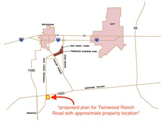 The NW corner of the property is expected to be a hard corner of the proposed Twin wood Ranch Road and FM 1093 intersection. The property currently has power, a water well, and a septic system. There is a pipeline easement on the property that runs from the Northeast corner to the middle of the West side of the property. The pipeline easement creates a 2+ acre parcel on the proposed hard corner of Twin wood Ranch road and FM 1093. High and best uses for this property would be retail space, multi-family housing, commercial use, or business park.