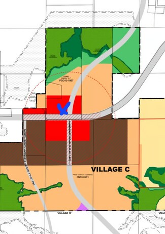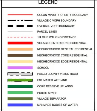 The Village C Master plan designates the property as “Neighborhood General” which would allow the property to develop at a maximum of 5 dwelling units an acre, but to exercise this option, would need to rezone the property to a Master Planned Unit Development (MPUD). All subject to review from the planning department.