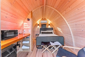 The property offers nine guest accommodations, including five singles, four doubles, and suites, along with four custom glamping pods by Glamping Pods of America and four RV sites with 30-amp electrical hookups. Amenities include a guest lounge and shower house with two full restrooms, a common kitchen, 24-hour bike shop, hot tub, sauna, cold plunge, outdoor shower, picnic tables, BBQ grill, community fire pit with firewood, Muc-Off bike wash station with repair stands, hammocks, yard games, and complimentary surface parking with 10 spaces. Acquired in April 2021, ownership completed a full renovation featuring new plumbing, electrical, HVAC, insulation, windows, doors, flooring, and fixtures. Consideration will be given to ongoing property management and the transfer of business and personal assets, and ownership is open to various purchase structures, including the possibility of owner financing.