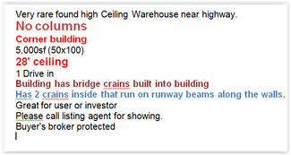 No columns, Corner building 5,000sf (50x100) 28' ceiling 1 Drive in Building has bridge crains built into building Has 2 crains inside that run on runway beams along the walls. Will being deliver vacant at closing Great for user or investor Please call listing agent for showing. Buyer's broker protected.