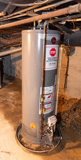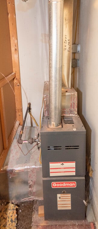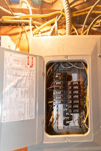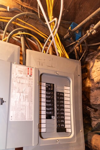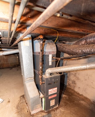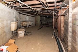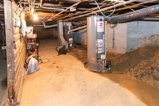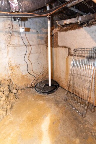 Full unfinished basement divided into two open areas, ideal for storage or utility use. Includes sump pump, gas water heater, forced hot air system, and two electrical panels.