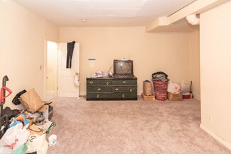 Long-term tenant in place. One-bedroom, one-bath unit with private entrance. Carpeted living and bedroom areas, tile kitchen flooring, and forced hot air heat. Tenant pays BGE; landlord covers water.