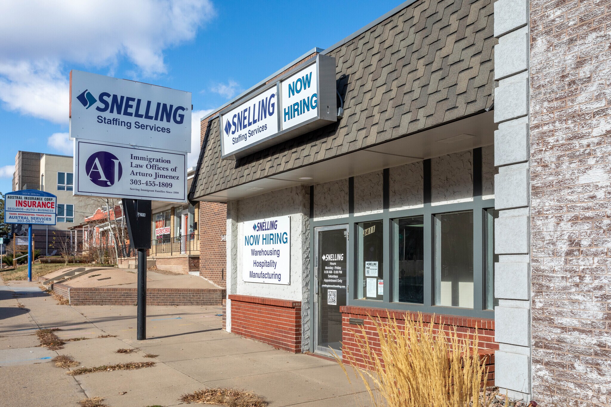 This property has great visibility on 38th Ave, situated between Federal Blvd and Tennyson. Many new construction projects have recently been completed in the area increasing the foot traffic, including numerous multi-tenant residential and retail directly across the street. There is a backlit sign above the entrance of the space, as well as a 7 foot monument sign. There is also a private parking lot behind the building.