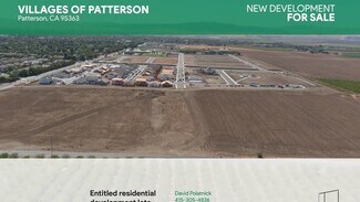 Prime investment in an Opportunity Zone - up to 62 units located in the Villages of Patterson master development site with 5-12 units to the acre. Patterson Details ? VOP project approved and vested ? 692 Acres Master Planned Development ? 3,100 approved housing units in VOP ? Two of the three planned schools are completed within VOP ? $67M CFD formation for overall infrastructure ? Patterson maintains a small town feel and family orientated values