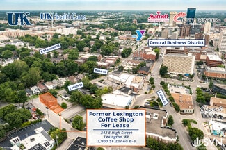 SVN Stone Commercial Real Estate is pleased to present this opportunity to lease a 2,900 SF former coffee shop at 343 E High Street. In addition to cafes and pubs, the space would work well as a professional office and other types of retail. The property offers good visibility and opportunities for employees and customers to park on-site and on nearby lots. The property is centrally located within a University of Kentucky student housing neighborhood and on the cusp of Lexington's central business district and the prestigious Chevy Chase subdivision. For additional information please contact Wade Haga at 859.285.2202 // wade.haga@svn.com or Neal Metcalfe at 859.312.8069// neal.metcalfe@svn.com.