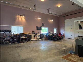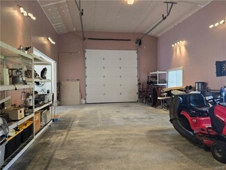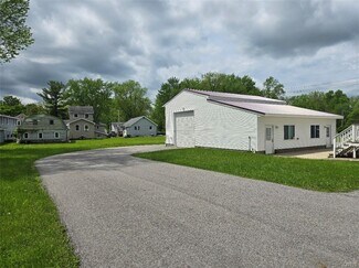 Motivated Seller! Great Commercial opportunity here on this Canastota double lot!! Corner lot with paved driveway already set up for a drive through. Massive finished garage with extra high garage doors to fit a camper. Great location, right next to the new development of Tesla and a maple leaf store in the R2 Business District. The house has been well kept with a newer metal roof, newer flooring, just professionally cleaned, all the walls have been recently painted and you will see all the moldings/doors are taped off and ready to be painted.