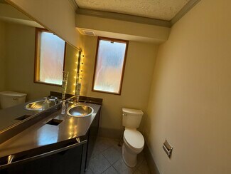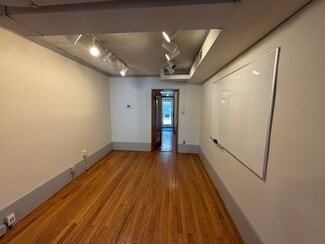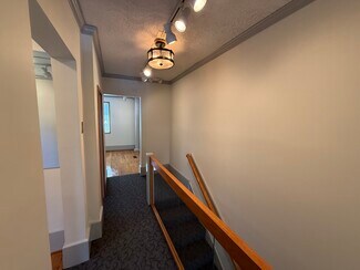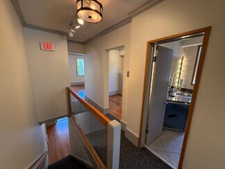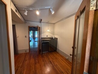 The building features an open first floor floor plan, a large glass store front on the first and second floors providing ample natural light, attractive hardwood floors and light fixtures throughout, private offices on the second floor, one private restroom and a lot of off-street parking.
